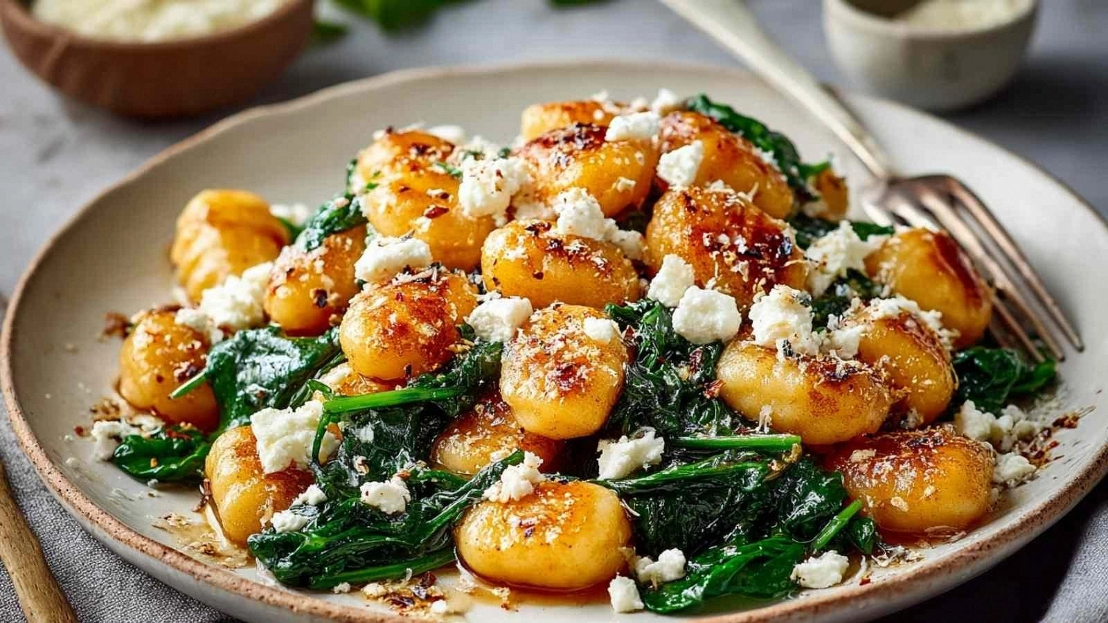 Spinach is the unexpected star that adds color, nutrition, and a burst of fresh flavor. Fresh baby spinach is ideal because it cooks quickly and keeps its bright green hue. When sautéed with garlic, it releases a subtle sweetness that pairs beautifully with the feta’s tang. Skipping spinach would leave the dish feeling empty; it’s the bridge between the crunchy gnocchi and the creamy feta.