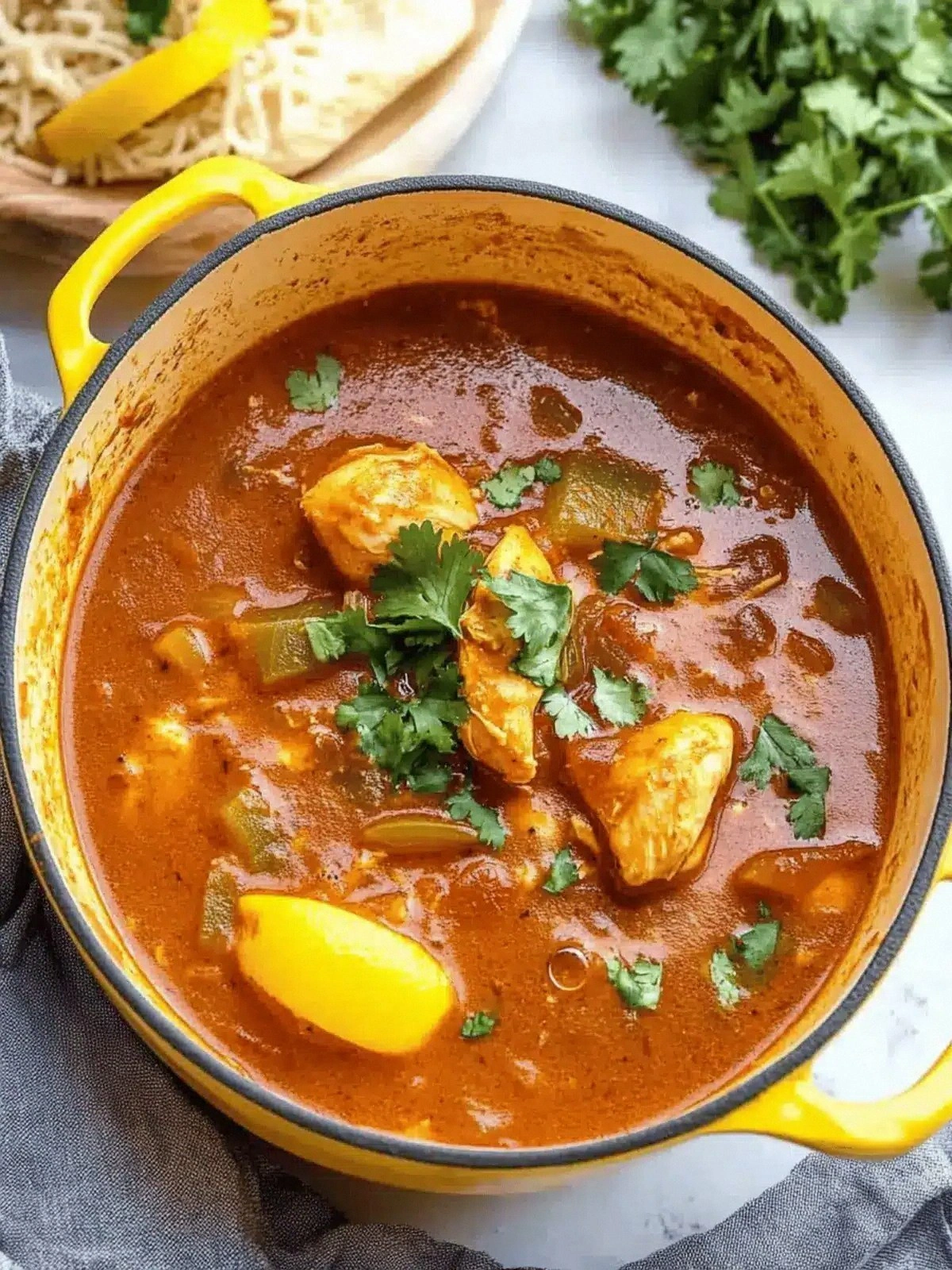 Replace the chicken with cubed seitan or tofu, and use vegetable stock instead of chicken stock. The tofu will absorb the spices, while seitan offers a meaty texture. The stew remains hearty and flavorful, making it a great plant‑based option.