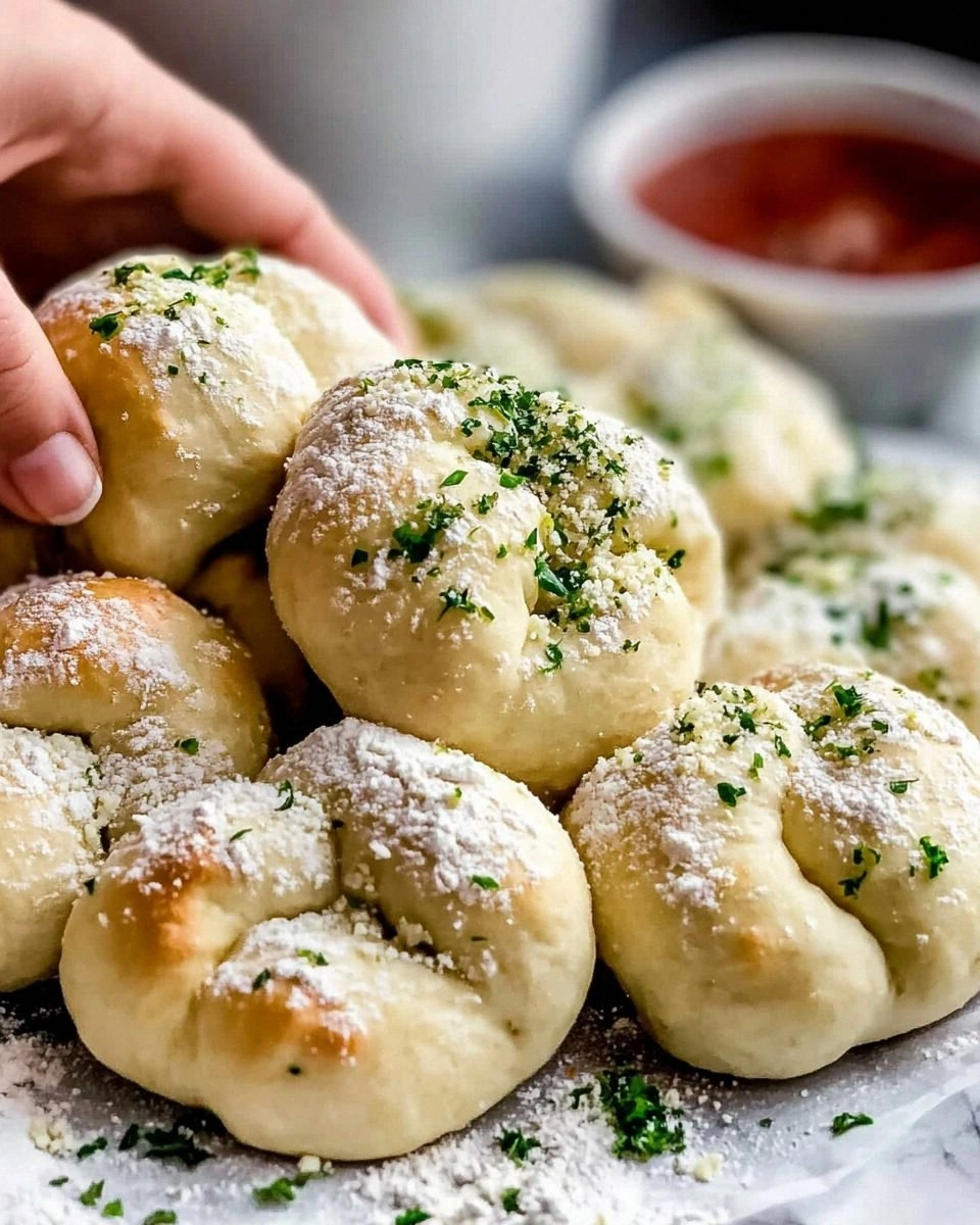 Serve the knots with a warm marinara sauce and a side of melted mozzarella. The sauce’s acidity balances the buttery dough, while the cheese adds a gooey, comforting layer.